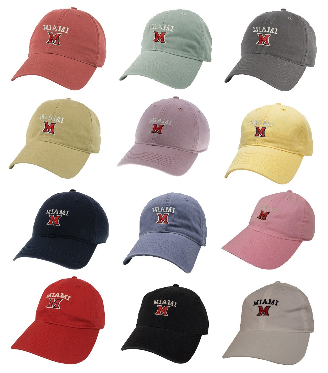 • Bold Miami Design: Features the word “Miami” arched over a prominent “M” logo, embroidered on the front panel in team colors—offering a clean, recognizable tribute to Miami University.