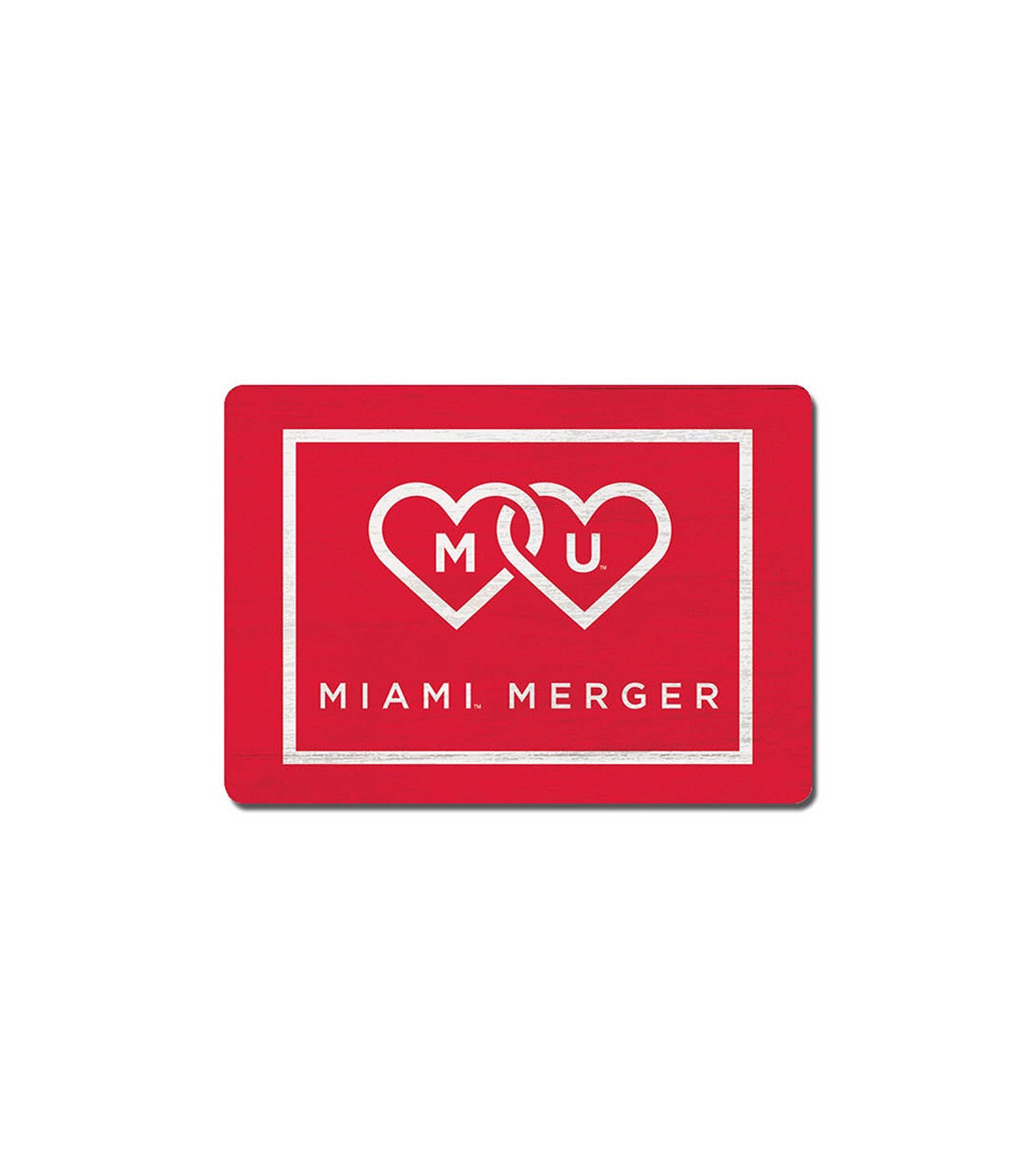 Celebrate a love story rooted in tradition—this wooden magnet pays tribute to the cherished Miami Merger legacy. Whether it’s a keepsake for your own merger or a gift for a RedHawk couple, this magnet is a heartfelt nod to Miami University’s tradition of love and honor.