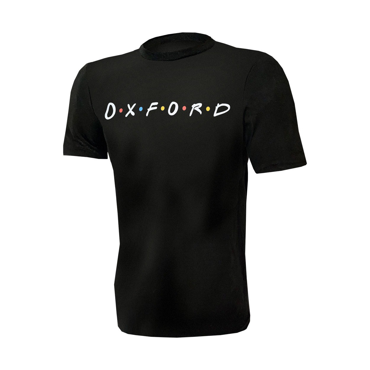 Oxford "Friends-style" Short Sleeve Tee, Black features iconic styling reminiscent of the old sit-com spelling out OXFORD with dots between each letter.