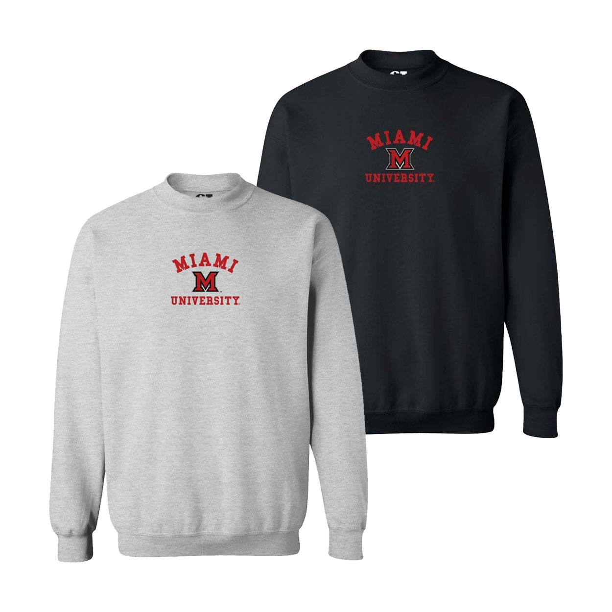 Miami University Block M Embroidered Crew, Ash or Black