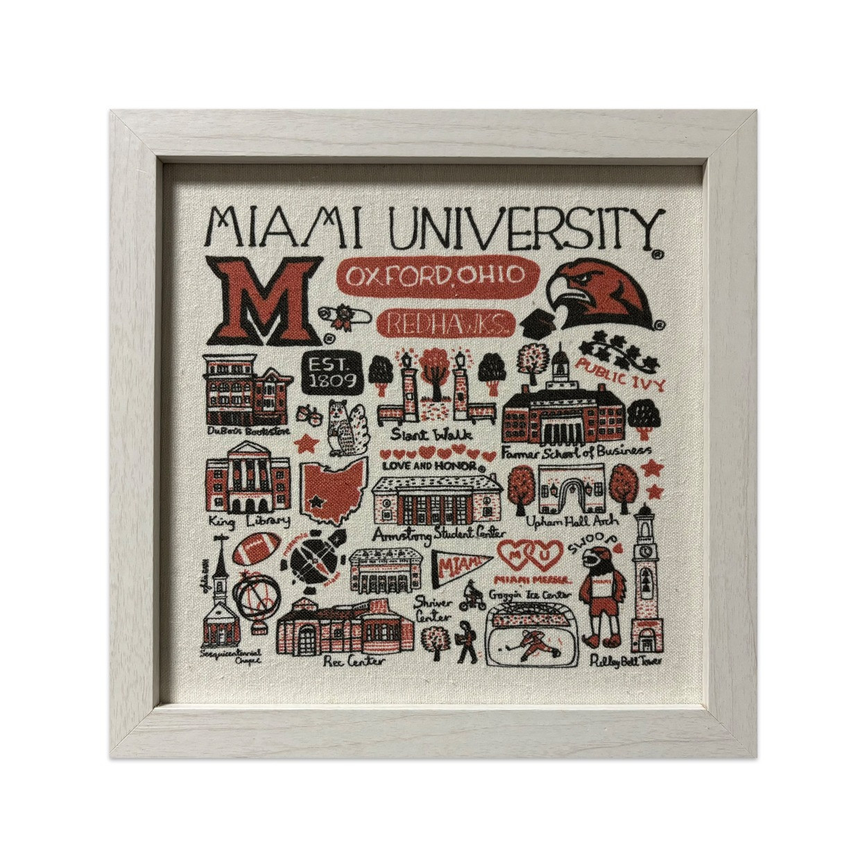 Celebrate the charm and spirit of Miami University with the Julia Gash Framed Canvas. Featuring whimsical illustrations in Julia Gash’s signature hand-drawn style, this artwork captures campus landmarks and RedHawk pride in a vibrant, collectible piece. Whether you're an alum, student, or lifelong fan, this framed canvas is a stylish way to honor your Miami connection. Hang it up and let the memories live on in art.