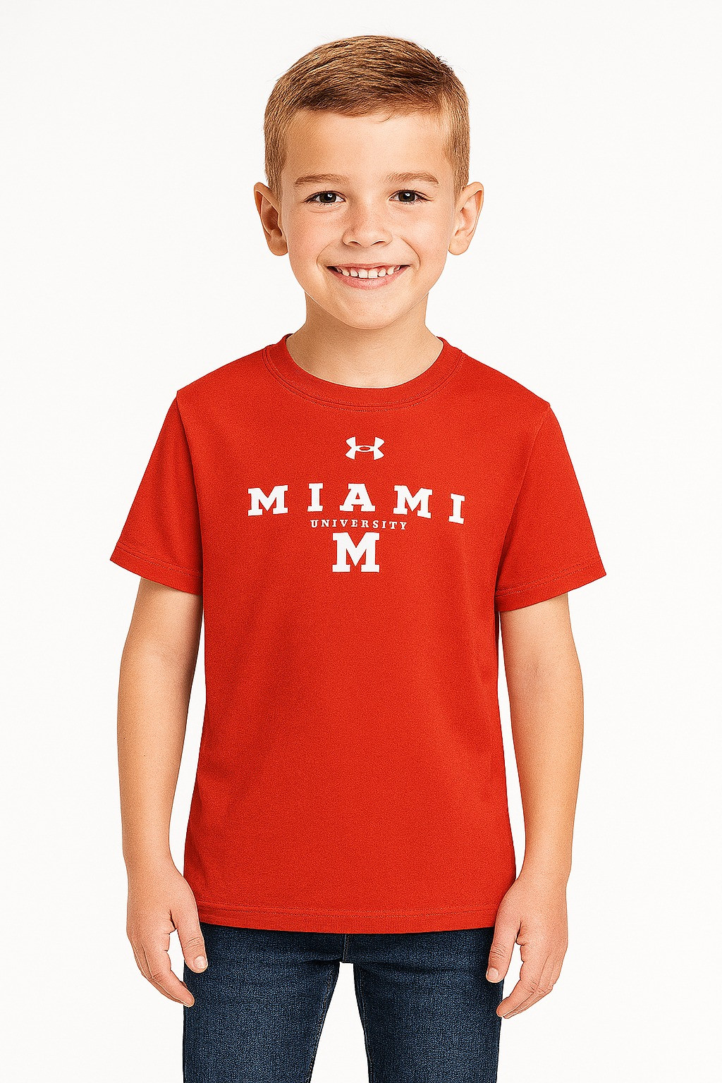 - Bold Miami red base with white Miami University over Block "M" logo gives the tee vibrant energy and makes school-spirit styling easy — great with shorts, jeans, or tailgate-ready outfits.