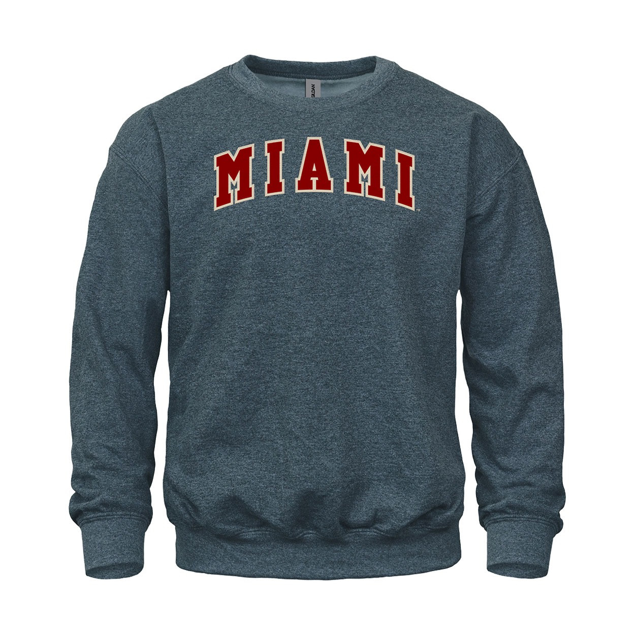 • Arched “Miami” Graphic: Features bold, arched fleece “Miami” lettering applique across the chest in collegiate-style font, delivering unmistakable school spirit with a vintage-inspired look.