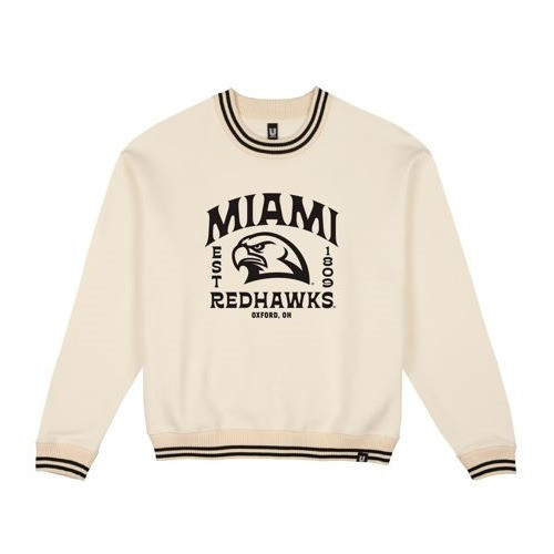Add a bold twist to your collegiate wardrobe with this striped crew neck sweatshirt. Featuring standout “Miami” lettering and RedHawks flair, it’s a stylish layer that blends tradition with eye-catching design. Whether you're layering up for game day or strolling through campus, this sweatshirt brings warmth and Redhawk pride with a graphic edge.