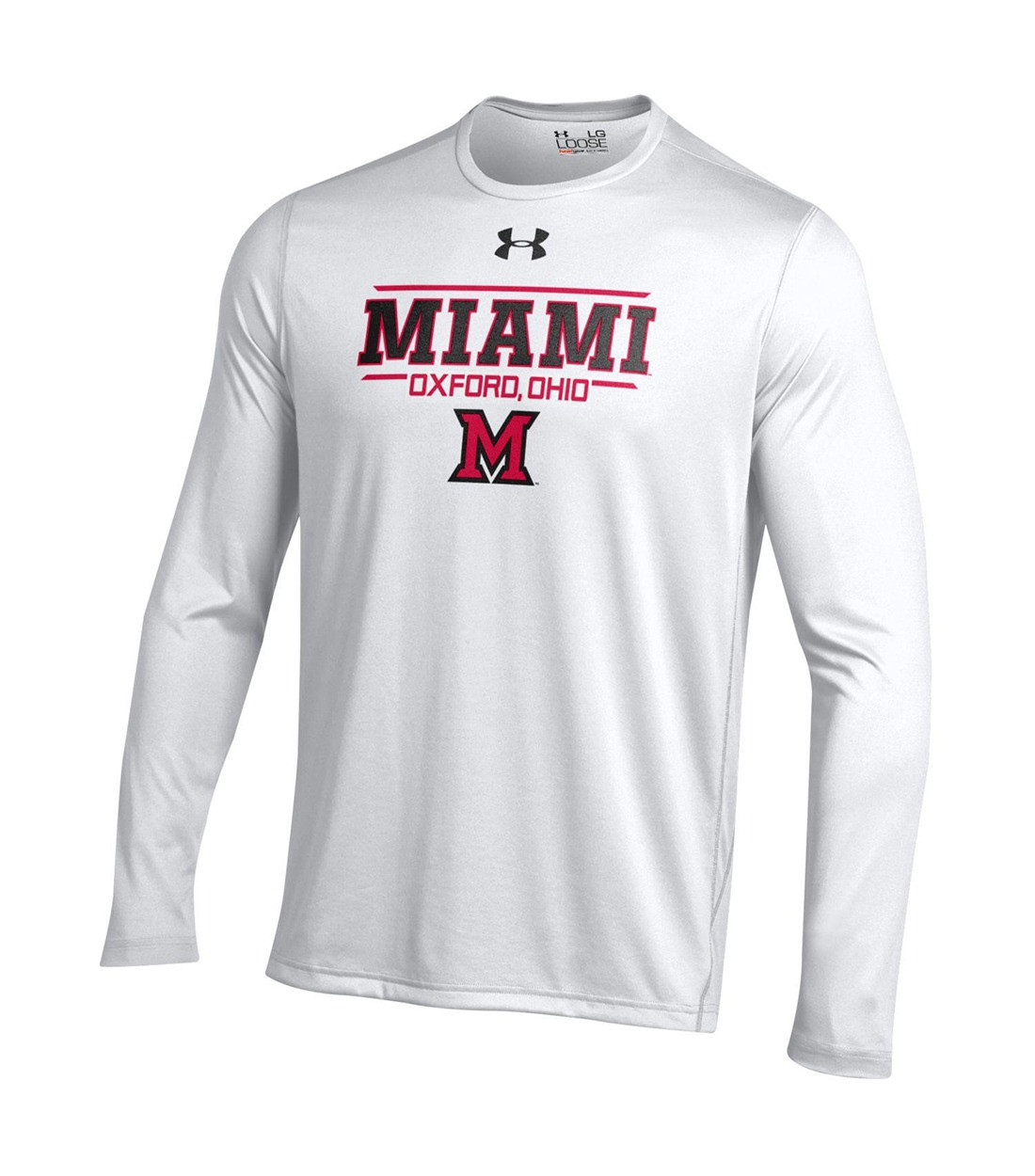 The Under Armour White Miami Long Sleeve Tee is a sleek, performance-ready shirt that blends athletic comfort with bold RedHawk pride—perfect for layering, workouts, or casual wear. This long sleeve tee is designed to keep you comfortable while showcasing your Miami University spirit in a clean, versatile style. Whether you're heading to class, hitting the gym, or cheering from the stands, the Under Armour White Miami Long Sleeve Tee delivers comfort, performance, and unmistakable RedHawk pride