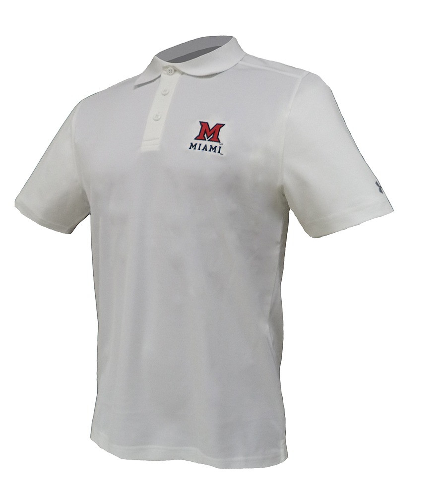 The Under Armour Polo with Block M Logo is a sleek, performance-ready shirt that blends athletic comfort with bold Miami University branding—perfect for business casual settings, alumni events, or spirited everyday wear. This polo combines Under Armour’s signature moisture-wicking technology with a clean, collegiate design, making it a versatile staple for RedHawk fans who want to stay cool and look sharp. Whether you're heading to a meeting, repping your alma mater at an event, or enjoying a relaxed weekend, the Under Armour Polo with Block M Logo delivers comfort, performance, and unmistakable RedHawk pride.