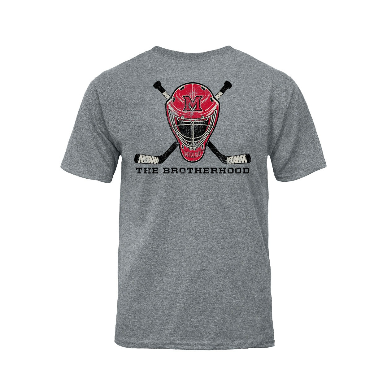 • Hockey-themed graphic prominently features “Miami RedHawks,” perfect for fans of the university’s storied hockey program