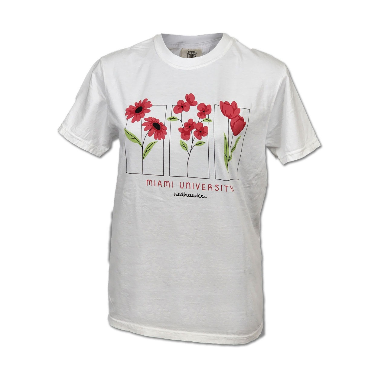 Celebrate your RedHawk pride with a fresh floral twist in this soft short sleeve tee from Summit. Featuring a clean white base and botanical-inspired Miami University design, it’s perfect for sunny days, campus strolls, or casual outings. Whether you're repping Miami in the classroom or soaking up the sun, this tee brings school spirit with a stylish bloom.