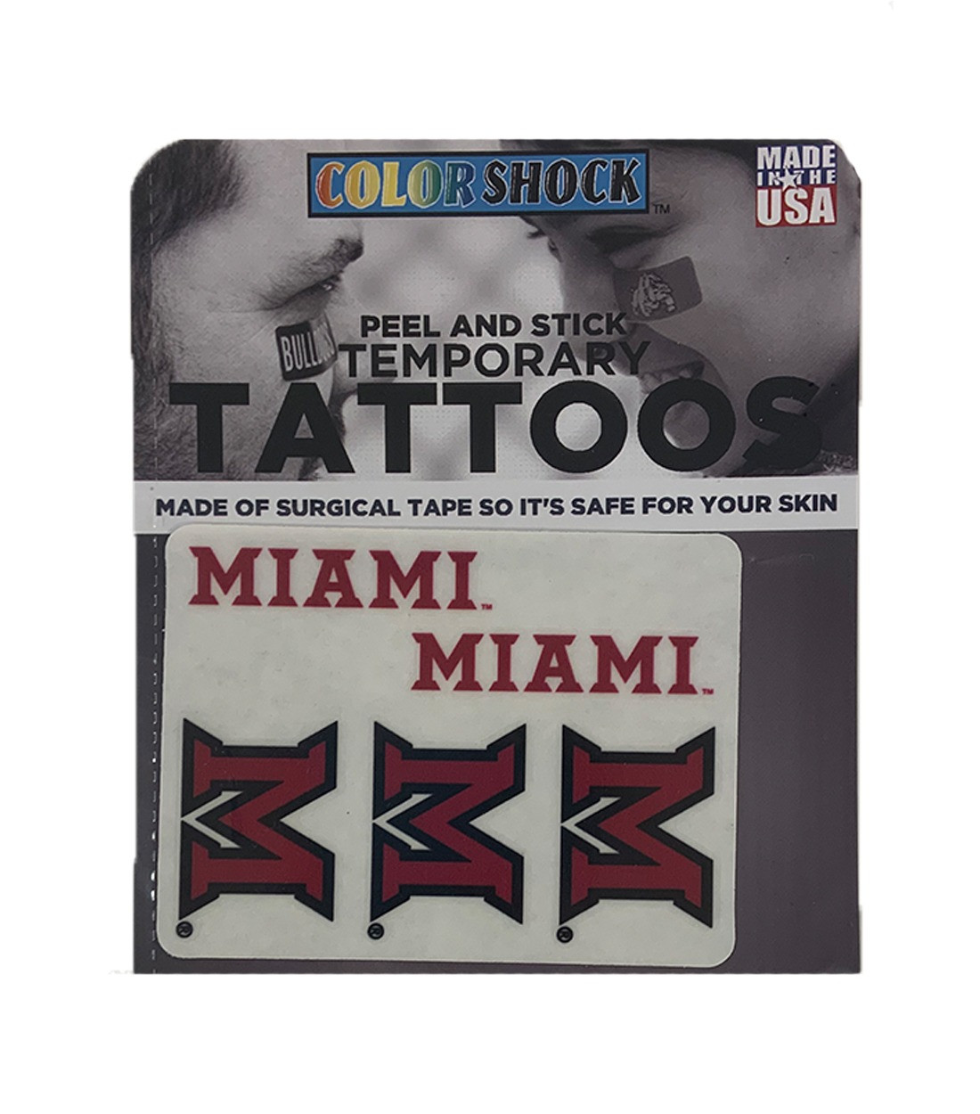 Amp up your game day look with Miami and Block M Logo Face Tattoos—a fun and spirited way to wear your RedHawk pride front and center. Perfect for tailgates, pep rallies, or any Miami University event, these temporary tattoos add bold style to your fan gear. Whether you're cheering from the stands or celebrating with fellow RedHawks, these face tattoos are a bold and festive way to show your Miami pride.